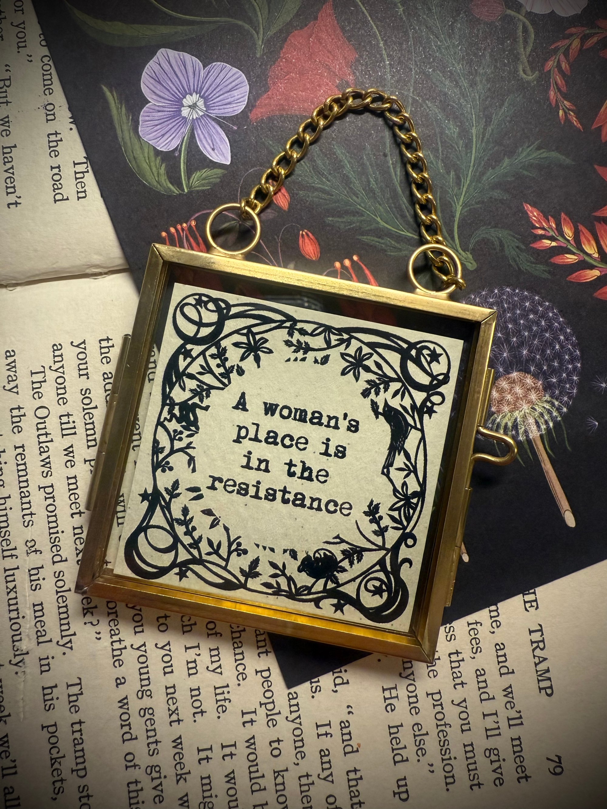 Pretty, rustic typography print edged with papercut design, signed on the reverse and framed in a double glass, brass edged frame. Comes prettily wrapped and in a slider box.