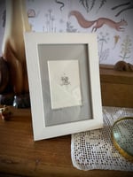 White wooden frame with a lovely natural grain finish and a light grey mount for Lou to frame your miniature/ACEO artwork (purchased at the same time).